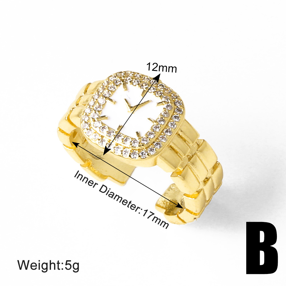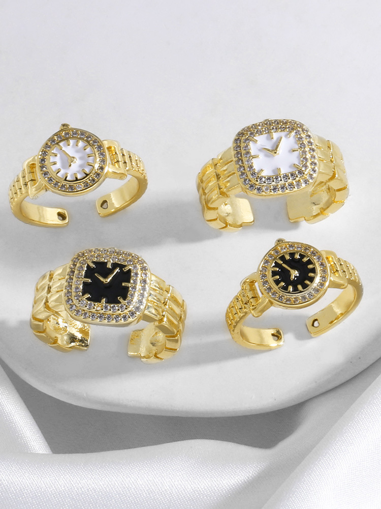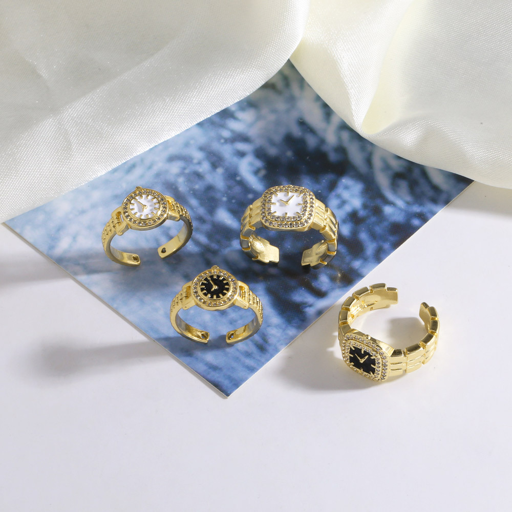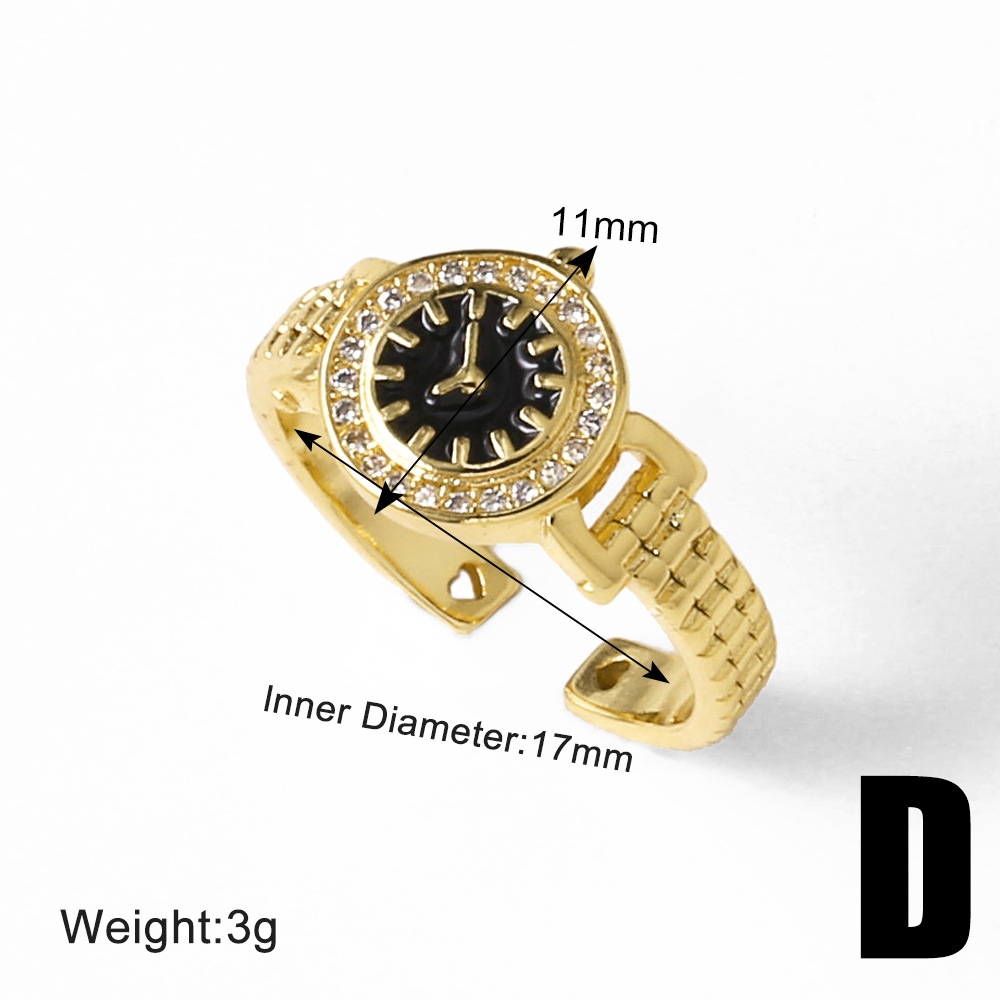 AS jewelry copper plated real gold clock watch oil drop open ring ring female rir08