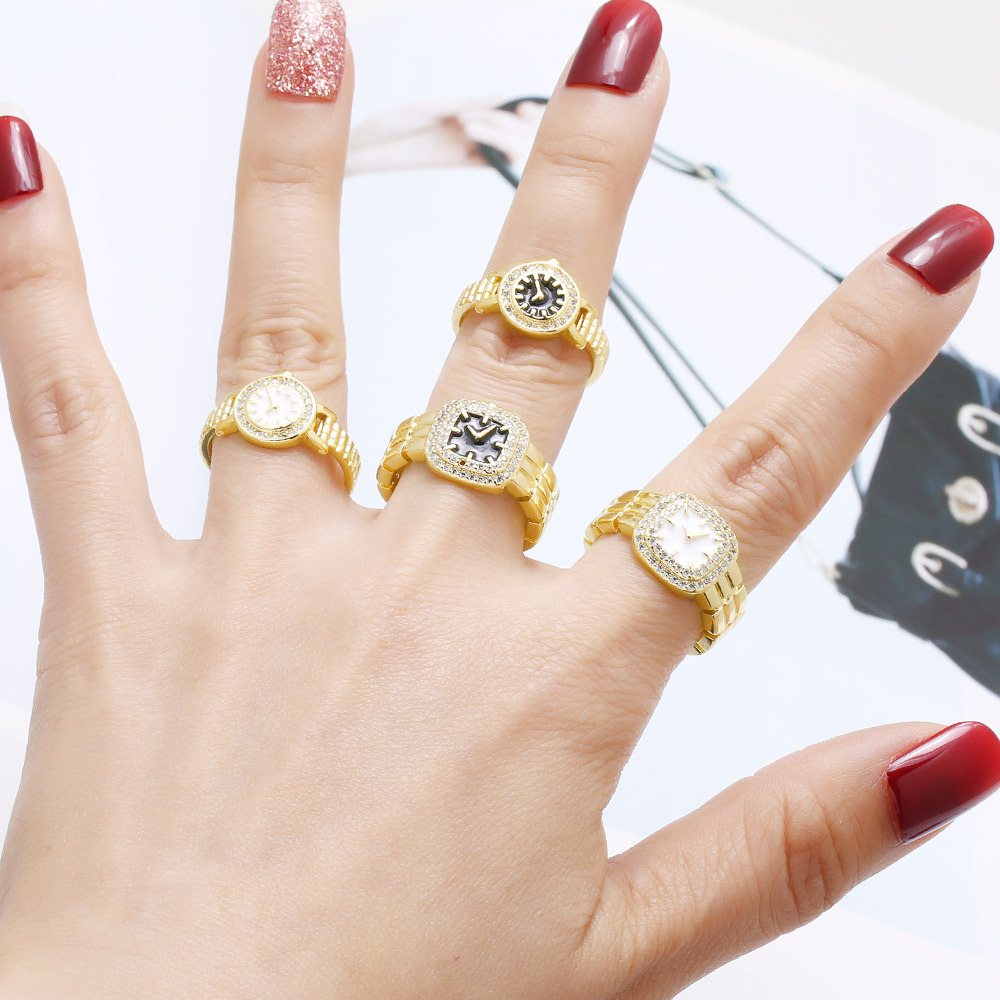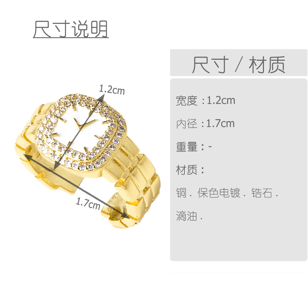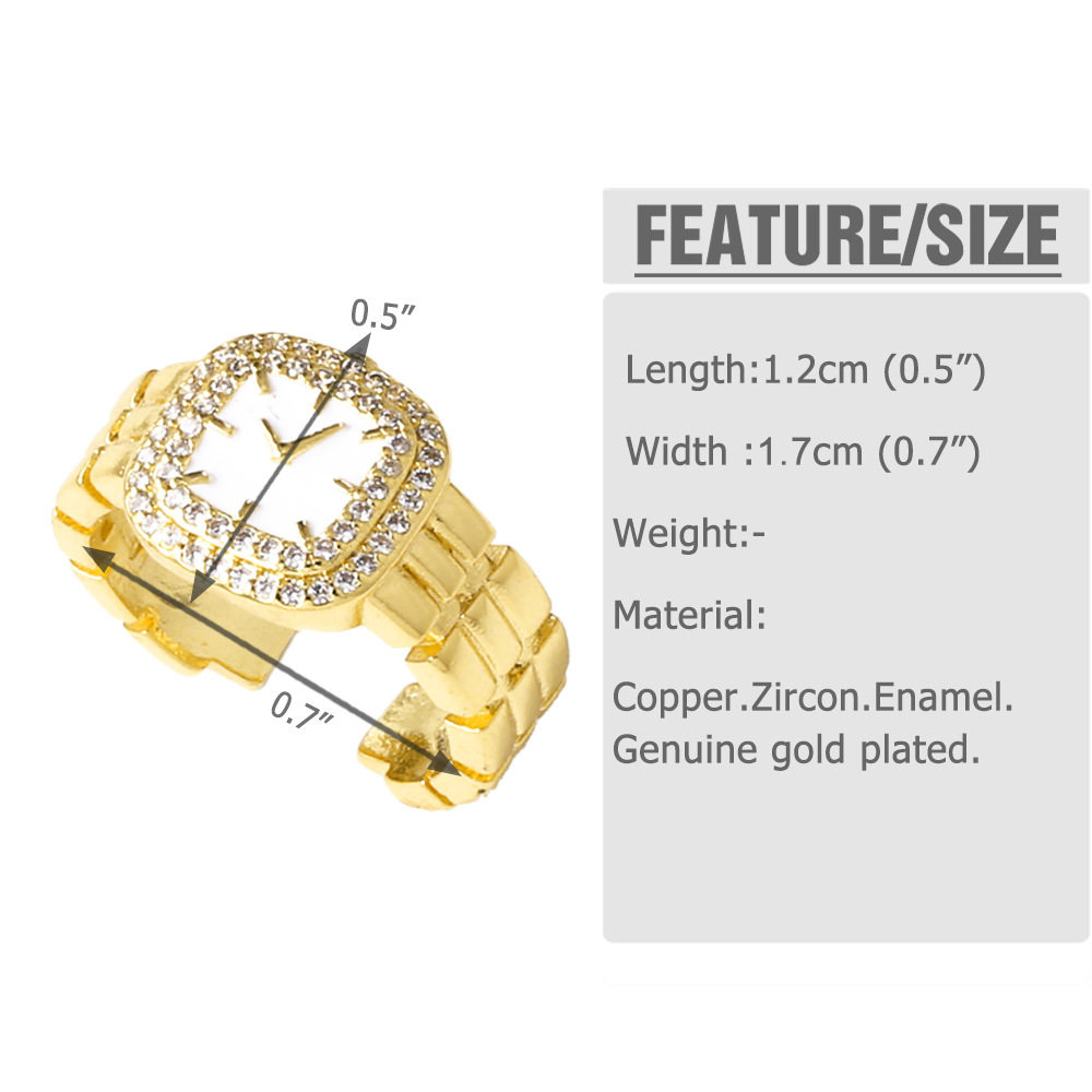 AS jewelry copper plated real gold clock watch oil drop open ring ring female rir08