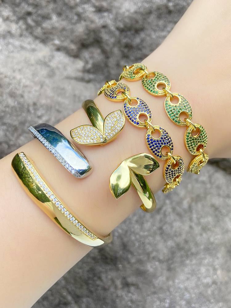 AS jewelry European and American high-end butterfly hand-made gold-plated inlaid colored zircon open wide version bracelet brj67