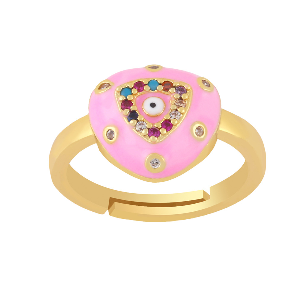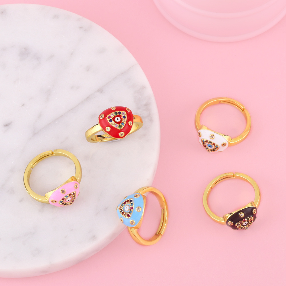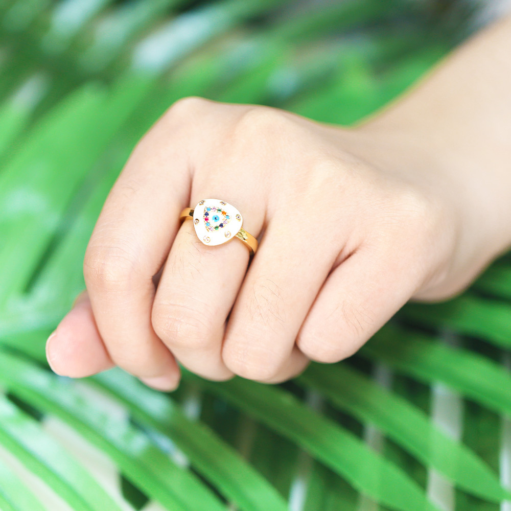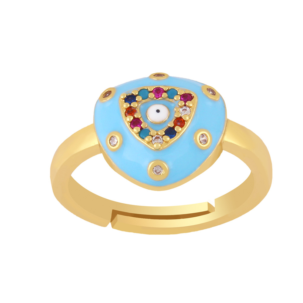 Clearance European and American multi-color oil drop zircon ring female personality retro geometric eye ring jewelry rin48