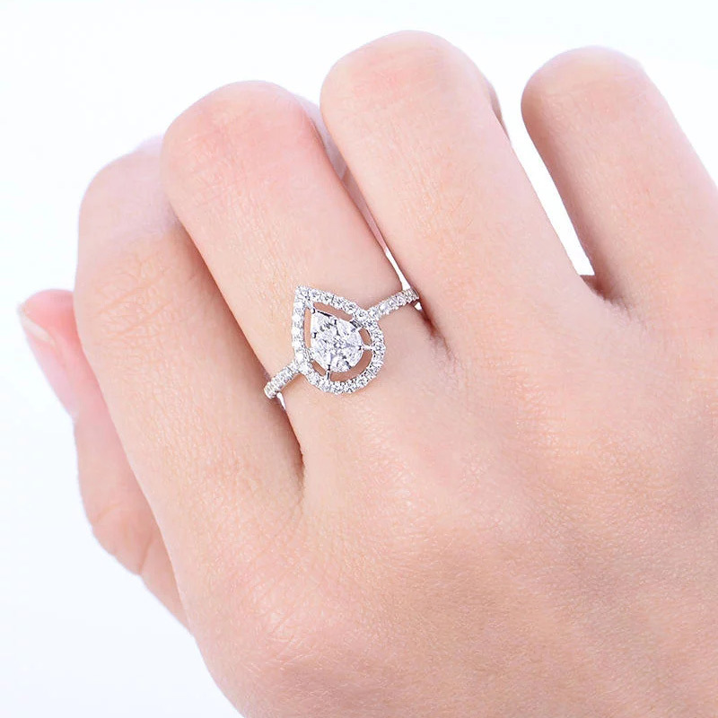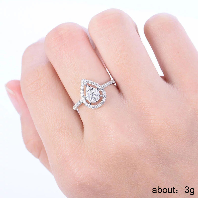 European and American copper accessories creative hollow water drop pear-shaped ring women's full diamond micro-inlaid zircon ring