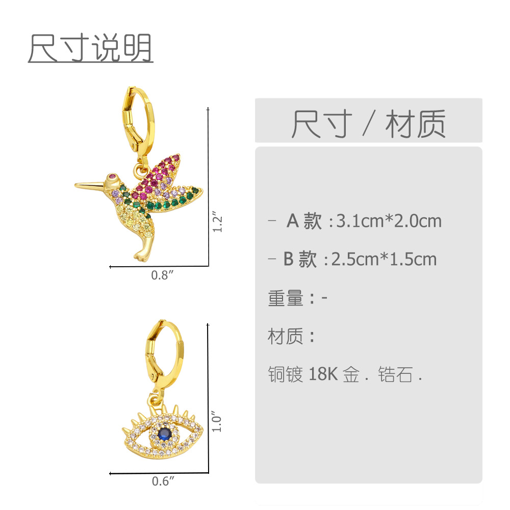European and American style earrings niche design temperament inlaid with colored diamond earrings female personality fashion Internet celebrity earrings era117