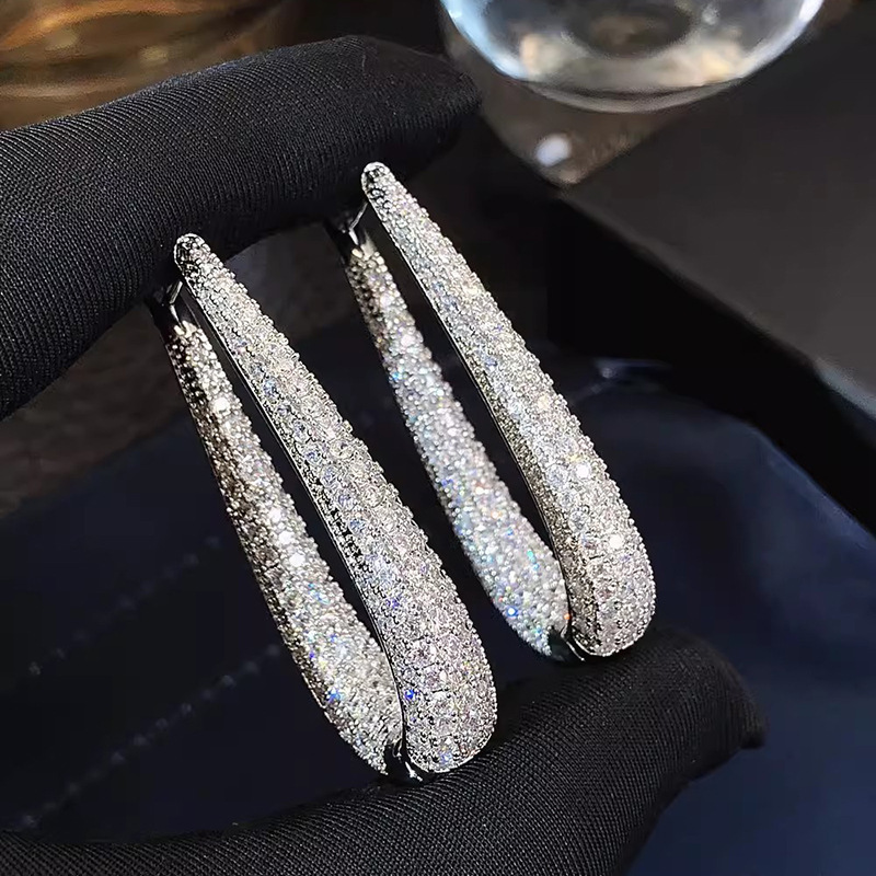 Factory direct sales of high-end earrings for women, full of diamonds, shining, light luxury style jewelry, elegant and elegant water drop design