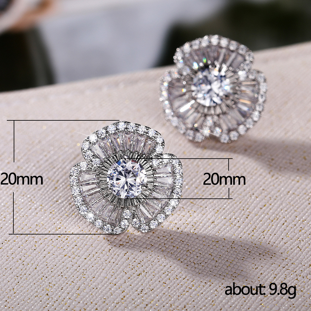French light luxury earrings full of diamonds and super shiny zircon camellia earrings for women sweet and versatile flower earrings