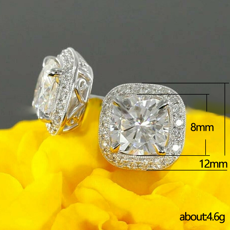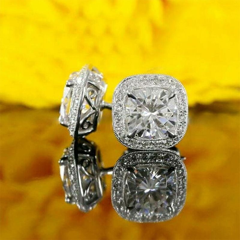 Live hot selling new classic four-claw princess square bag zircon earrings fashionable commuter earrings for women