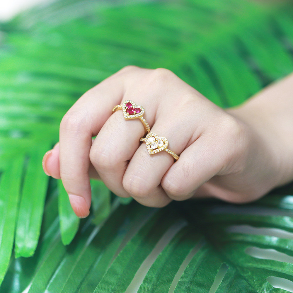 Love color zircon ring female niche design cold style advanced light luxury adjustable female ring rip94
