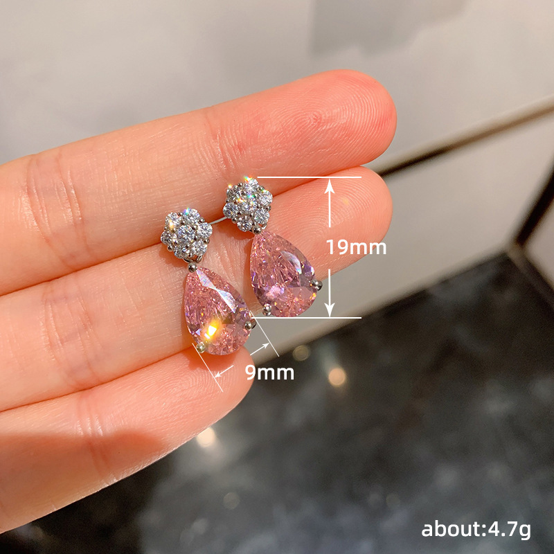 New European and American French earrings, exquisite, fashionable and elegant pink teardrop earrings, Japanese and Korean personality and shiny style