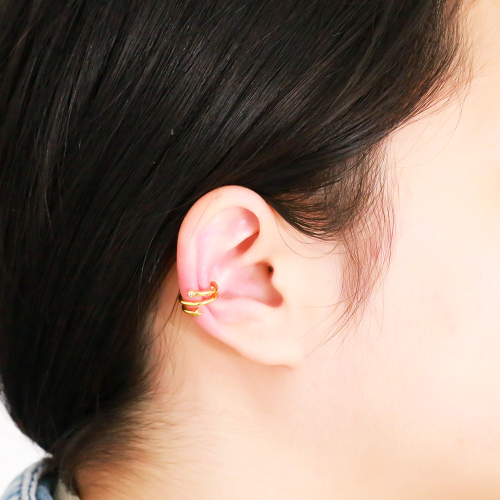 AS jewelry Europe and the United States hot selling double row earrings ladies copper plated real gold inlaid zircon earrings ear bone clip era351