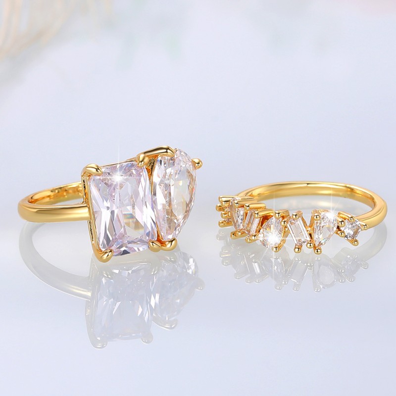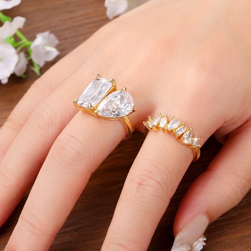 Water drop diamond ring female star same style water drop spiral ring geometric couple ring gift dazzling ring